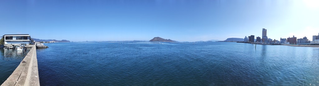 朝少し早く着いたので波止からLIVLOV,女木島,サンポートを撮してみました。
